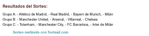 Lista de participantes: - FC Barcelona, - Real Madrid, - Manchester United, - Inter de Milán, - Chelsea, - Bayern de Munich, - Arsenal, - Milán, - Manchester City, - Totenham, - Villarreal, - Atlético de Madrid.