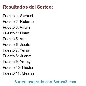 Lista de participantes: Yeray, Juanmi, Mesías, Dany, Samuel, Airam, Héctor, Josito, Roberto, Yefrey, Aris.
