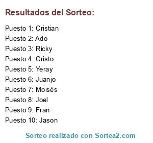 Resultados del sorteo: