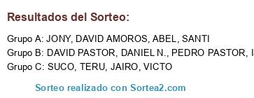Lista de participantes: JAIRO, DAVID AMOROS, VICTO, ABEL, SUCO, TERU, ISMAEL, DANIEL N., PEDRO PASTOR, JONY, DAVID PASTOR, SANTI.