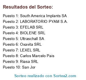 Lista de participantes: LIOI, RUBÉN ANTONIO, Histo S.A., INVESTIGACIONES Y DESARROLLOS ARG. SRL, EFELAB SRL, LEXEL SRL, Oxavita SRL, Grupo Promex, Gobierno de Santa Fe, Subsecretaría de Comercio Exterior, BIOLENE SRL, TERRAGENE SA, Laboratorios DIRAL SRL, Jotatec SRL, EKOSUR SA, MARCELO SOMMER, South America Implants SA, San Jor, Riasa SRL, Ultraschall SA, LABORATORIO PYAM S.A., Carlos Marcelo Pais, daydes s.a., .