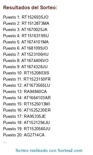 Este sorteo ha sido certificado por Sortea2. Sortea2 garantiza que: