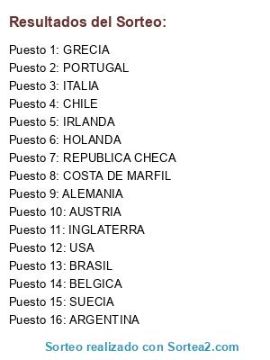 Lista de participantes: DINAMARCA, MEXICO, IRLANDA, FRANCIA, BELGICA, ESPAÑA, SUECIA, GRECIA, PORTUGAL, REPUBLICA CHECA, URUGUAY, ARGENTINA, BRASIL, ITALIA, HOLANDA, RUSIA, COLOMBIA, INGLATERRA, ALEMANIA, CHILE, AUSTRIA, POLONIA, COSTA DE MARFIL, SUIZA, USA, TURQUIA.