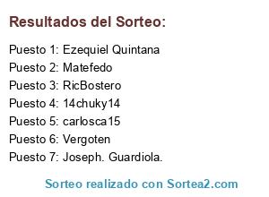 Lista de participantes: carlosca15, 14chuky14, RicBostero, Vergoten, Ezequiel Quintana, Matefedo, Joseph. Guardiola..