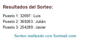 Este sorteo ha sido certificado por Sortea2. Sortea2 garantiza que: