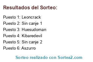 Lista de participantes: Leoncrack, Huesudoman, Aszurro, Kivaredevil, Sin canje 1, Sin canje 2.