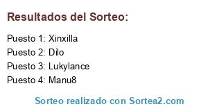 Lista de participantes: Manu8, Xinxilla, Dilo, Lukylance.