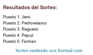 Lista de participantes: Ferman, Jemi, Regueiro, Pedrovelasco, Pepuz.
