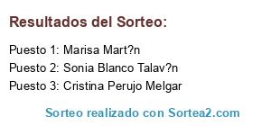 Lista de participantes: Maria Teresa Fernandez Ferreira, Ang?lica Blanco Talav?n, Noemi Sg, Sara Herranz Isidro, Carolina Roger Manzano, Beatriz Casal L?pez, Carolina Gilabert Vera, Ana Bautista Ruiz, Inmaculada Peralta Chafer, Lara Ruiz, Zeltia Aguanchifleiva, Bel?n Alonso, Viana Eva Marya, Alicia Fernandez, Natalia Garcia, Maria Jose Garcia Martin, Estibaliz Esti, Isabel Cornejo, Ana Martinez, Elisa Lasheras, Mar?a Mgm Garc?a Monta?o, Beatriz Camarena Ruiz, Cristina Solanas, Maria Benito, Marta Hermosilla Rojo, Natalia Olmos, Alicia Pozo Garc?a, Bea Pe Calvo, Carol Adan, Flory Rodriguez Sanchez, Marian Andr?s Ma??, Argi Esquivel, Mariangeles Calder?n Cerrato, Susana Shooto Lozano, Maria Carmen Cerezo, Beatriz Julvez Gonzalez, Rosario Alvarez, Ver?nica Garc?a Gimeno, Bellatriz Fern?ndez Sanz, Mar?a Del Pilar Fern?ndez Mart?n, Beaxu GuSa, Lola Dom?nguez Mart?n, Pilar Aranda, Pascua Porta, Sonia Blanco Talav?n, Sonsoles Santa Velez, Maite Martin Fernandez, Mariana Sanchez Moreno, Soraya Pedrosa, Maria Rivas Fernandez, Alicia Pons Favieres, Isabela G?mez Joya, Ana Sampietro, Veronica Ruiz Vera, Maria Dolores Leal Esteve, Aurora Marques, Angela Chamizo Castilla, Chusa MaVi, Raquel Caballero Vega, Esther Pomar Pi?a, Vicky Fero, Rocio Navarro Bocanegra, Eva Maria Benedicto Perez, Mar Le, Davinia Galv?n Gamero, Lourdes Fdez-Monasterio, Leticia Cayon Arranz, Olaya P?rez, Maria Gonzalez Martin, Mari Carmen Romero, Maria Isabel Rodriguez Alvarez, Aleksandra Iliyanova, Emma Herrero, Ester Mosquera, Laura Bc, Guada HT, Aintzane Donostiako, Merche Mart?nez, To?y Navarrete Martinez, Mariana Grau Sanchez, Mar?a Rami, Blanca Fernandez Lopez, Carmen Tortajada, Mariano S?ez Montes, Maria Angeles Garcia Garcia, Marta Bona, Maria Jose Urbina Lavin, Rosa Exposito, Sonia Campos, Luisa Maria Garcia Repiso, Carme Rodriguez Tellez, Maria Del Rosario Martinez Ruiz Berdejo, Nelly BaMu, Conchi Margut, Carmen Lopez Ortiz, Inma Descalzo Campos, Gracia Rodriguez Avila, Esther Corchete, Cris Almenar Villalba, Chelines Salgado, Laura Morales Mirete, Pilar Aparicio Gomez, Raquel Moyano Coca, Irelu Mupi, Ana Maria Castillo Pedrosa, Silvia Fern?ndez, Monica Perez Egea, Rosario Vava, Alba Gonzalez, Nuria Garc?a Vilardell, Nathalie Llaima Perez, Isabel Gomez Saenz, Sandra LR, Alisber Suarez, Cristina Perujo Melgar, Tamy Tam GS, Vanesa Morera Celis, Ana G?mez L?pez, Sandra Martinez, Sali Vicente, Ana Rico, Agustina Hernandez Garcia, Pilar Tinoco, Sara Gutierrez Fndz, Sandra Orgaz, Mar?a M. Tinoco, Aroa VM, Silvana Gopes, Manoli Quinto Vives, Jasmine Serra Montes, Victoria Veintimilla Santos, Mar?a Magdalena Osma Bosch, Maria Jose Candela, Marta Velasco Gimeno, Amelia Rodrigo Cester, Nuri Lopez Nurilope, Marian Casares, Virgi Villar, Isabel Joya Espinosa, Angeles Maldonado, Purificacion Gil Berdejo, Vanesa Zafra, Irene Rago, Montse Vivo Gutierrez, Lucyy Garridoo, Elena Fren Chy, Almudena Ramos Orozco, Ana Trufula, Dana Corseu, Mercedes P. Dasilva, Renata Pessanha de Menezes, Xandra Gomez Garcia, Nutriblogger Nubecris, Esti LV, Paulina Maria, Sylvie P?, Sonia BM, Norita Morando, Naiara Aldama Pe?aranda, Marisa Mart?n, Marta Roman, Loida Garrido Pinto, Amina Phoenix, Rachel Mills, Ainhoa Aguiar Mart?n, Montserrat Herrero Perez, Noelia Fern?ndez, Monica Toledo Calatayud, Carmen Llorens Verduch, Alice Elisabeth, Lorena Garcia Hernandez, Bea Alvarez Martin, Paula R?os, Amalia Bel?n Ruiz Martin, Lorena SG, Diana Pe?a Delgado, Paqui Herranz, Merche Sacristan Mas, Ana M Fern?ndez, Ana Maria Val, Sonia Visos, Carmen Pedro, Josefina Fernandez, Pili Pilar Xusky, Nuria Sanz, Olvido Martin, Eva Fortu?o, Teresa Tornero Rubio, Ines Gutierrez Azuar, Lara Martin, Laura Perez Sanchez, Aagrafa Martin Rosa Martin, Rocio Martin, Ire Canudo, Sonia Garcia Pastor, Rosa Garcia Gonzalez, Llanos Espinosa, Chus Montalban, Vanesa Delgado Hurtado, Mari Carmen Gonzalez Guzman, M?nica Estadella Garc?a, Cristina Gil, Ana Bel?n, Maite Sevilla del Pozo, Maria Navre, Amparo Sahagun, Carmen Rodr?guez, M Antonia Camacho Rabadan, Carolina Pozo Garc?a, Elena Gallo Soto, Itziar Prada L?pez, Chen Silvina, Sandra Serra Perez, Maite Frechoso Diez, Susana Carretero, Mar Rod, N?ria Agust? Ferr?, S?nia Sarr?, Maria Garcia, Dolors Senserrich Pair?, Adoracion Perez Nieto, Sandy Martin, Maria de los Santos, Felicidad Gea P?rez, Ana Bel?n Melero L?pez, Carmen JC, Susana Muriel, Isabel Conejo Mato, Maria Trinidad Campos Gonzalez, Gemma Csola, Maria Jes?s G?mez Justicia, Susana G?mez ?lvarez, Silvina Segovia, Santos Pe?a, Cristina del Sol, Esther Almagro G?mez, Isabel Cabanillas, Roc?o Mancera, Helen Mdz, Elena Martin, Piedad Ruiz, Ana Bel?n Moreno, Tania Carbonell Rodriguez, Julia L?pez L?pez, Eva Mila G, Cristina Garciabenito, Evita Laf, Elena Pintanel Argachal, Mar?a Eva Villaluenga, Vanessa Vicente Campillo, Lorena de la Fuente, Mis Cositas de Pepi, Reychel Mejias, Ana Vilriales Martinez, Gemma Casvi, Sonia Rodriguez Garcia, Carmen PeBu, Sonia Requena Diaz, Maria Rodriguez, Loly Fernandez, Macarena Sanchez Lopez, Marinilla Toledo, Luisa Segovia Peinado, Isabel Diaz Manzano, Yolanda Perell?, Encarni Est?vez, Ariane Montes, Yolanda Salcedo Mart?nez, Marisa Sousa Perez, Isa Maqueira, Lopez Lope Maria, Paloma Pazos Moncada, Noelia Vilchez, Mariajulia Martinez Molina, Chelo Molina, Mar?a Del Mar Cabello Gutierrez, Almudena Miravete Garcia, Vanesa Curto Sanchez, Silvia Carretero Garcia, Ana Fernandez Garcia, Geni Vicente, Nuria Rodr?guez, Cristina Mu?oz Correcher, Cocochanada Cocochanada, Ver?nica Faus Balaguer, Marta Novoa P, Loli Artacho Rueda, Maria Jose Ruano Tavira, Marisa Jacinto Ba?os, Carmen Badorrey, Maricita Saavedra Urquiza, Merci Jim Jim, Milly Bomb?n, Silvia San Agust?n Romanillos, Lorena Fernandez Ahijado, Pili Castillo, Daniela Espina Cabezas, Dolores Navarro Gonzalez, Encarni Rodriguez Pascual, Rosa Maria Santiago Lopez, Maika Vil, Cris H. Plaza, CAMRENCHANCES, CONCHIRT52, SUSANAMURIELA, MARYBRUXA, BGROUPIE, AROAOSUNA1, MARGINI99, VIVANLOSSORTEOS, MJNARE76, FUENSA