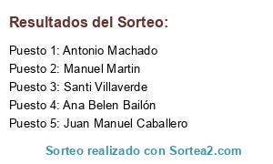 Lista de participantes: Antonio Machado, Manuel Martin, Ana Belen Bailón, Rocio García, Monica Reyero, Cobos, Esther Palma, Santi Villaverde, Jose Miguel Ruiz, Juan Manuel Caballero, Antonio Bailón, Miguel López.