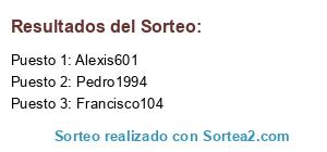 Lista de participantes: Mario1992, Thecesar591, Cesar23595, Maria581, Cata1996, Pedro1994, Tomas519, Theanita1989, Gabriel2004, Honeymam281, Agustin1996, Clanespaña591, Marlene304, Sergio1992, Miguel491, Alexis601, Francisco104, Claudio481, Marcos659.