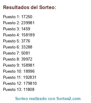 Este sorteo ha sido certificado por Sortea2. Sortea2 garantiza que:
