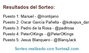 - 2016-11-15 09:17:16 (GMT): Se modifica el sorteo (los participantes y ganadores permanecen intactos)