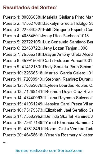 - Puesto 30: 41895713 Yuli Marily Arquinigo Roberto 011
