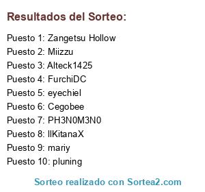 Lista de participantes: 0rochiMX, 15Richard10, 3lizabeth, 4NG3LZ3R0, Acceleratoslvl5, AceHack, Ácrata, AcZiel, Adriana Chan, adrianaesbella, adrianomartinz, Agitativepilot, Akantor09, Akaton22, AkronDeLopez, alanarmando, AlaudeX, Aldebaran CZ, Alejosaurio27, AlenWILLL, Alesska, alexanderlegend, AlexisMiguel1040, AliceNekosawa, Aline Ackerman, Aliztter, AllingHat266, Alteck1425, AndraellV, andreslun22, andry05, Andyblake, Angele12, AngelFlo, AngelOfSky, AnglDragneel, Aniger, Anorak8888, antorstor, AreCoca, arzo the death, Ashi24, Astrum Zala, Azazel Jahi, Azha, AzraelDreamur, Bashee, BelloSuperpancho, benjei, BerserkPervertt, blackdeath2025, BlacKisechi, BlackLeonX, Blacksterxx, blazemeed, BloodSpider, bombomcitosexy, BomiPink, BORG Mike, BraedenBasary, bryanpc, BurritoMax, BusterBlader1, Byron Sajquim, Cadaverini, Candelariaxd, CARLEJANDRO, Cegobee, ChoujiGameplayXD, chueco17, chumulano, Chuo Senpai, CIBC, Cisne Ravioso, ClefairyMew, Cproo Showii, CreedVenet, creex, cristianGato, Cuisi, Dabaher22, DaftPunkJbG, DaikiShadow, Daikiyami, Damian ile, Dannn23, dark wizzard32, Darkalia, DaRKCu1O, darkfire2016, DarkGamer DG, Darkjericho600, DarkPhoenix19, darkulo l, darkwardead, DarkWhitcher, DarkWizard7, Darrix, David540 90, davidblazed, DavidCena, dcjr, DeathShini, deiar, DeusForTheLolis, DevilEnvy, DFMDany, DianePrincessKun, DIDALX, DIEGOFGJ1, DiegoLol25, diegox3000, DixonKiller, DLNHkills, dohko94, draagnel1, Draco J, Dragon Redfox, Drakul Huntress, drown awful, drownedguy, DRubio, EDDIESTII, eddyneuman, edgargrin8, EdwardMDG, edwin1313, Egaar, El LesheShavo, EL TIO BRANDON, ElFhasTer, ElLocoQueAma, Elm4tapollos, ElR2, EneTakane, eru123, ERUCTO396, EspleyGold, eternalfree, eveiza, evilshunter, FakeBusterBlader, falconshick, FanKuro, Fanny Phoenix, Fariel, farsof, FeederEdux, FenixRage, FerSenpai, FiammaX, Fianatur, Firegod007, Forerunner1212, Franslike, Frida13, frontmission, fyurens, G3R4RD2, Galadriel2109, gamered, GasayYuno23, gatocol, Geraldhurtado, gercru black, German4Ever, gideon grey, GokuSon29041999, Gold Monkey, goldenayer, goraspop, guttersnipe1, Happyshield, Hashire, HatsuseIzuna, HermanoGamer2002, Herok, Herr kruger, Hi Im Shiro, Hide on sand, Hideki Kurogane, hidrospectre, hmad147, HN Manuel, Hold3r N4, Homgard, Horss29, Hungered, hunkirii, Hyacinth, Hymerizmo, Hypnotize, iAlaska, IceBetaRin, IDanichu, illustrious king, ilovethelolis, ImTheMasterpiece, Infectedcrocz, Inguma, Insane015, ItsDave Strider, iTzHommyP4, iUravity, IxREGULUSxI, jadark6, JAFETOX, JcDemented, Jenny24, Jenskiller, Jespiwboy, jess law, Jess5, jhonkings, Jimbo134, jjwou95, JohanMaster15, Jooooseph, JorgeRedfield97, josegx2210, JOSTHINRAF18, JprayDaedra, JScarlet, Juanes91, Julianseeker, junioronex, jvkun, Jvoorhees, KabuCarry, KaiDrasth, kaine0027, kaitoconan, kaku Jon Snow, KamiDead, kamuisenketsu, karitoriki, kasuss, kaylecito mas na, Kazpi, KeiberUzc, KeigerValle1016, KenNase, kenny y tu mama, kevinator14, KevLol93, kevlukas, KillerVenezolano, killler 5, Killmaster11, kilvero, KingArthur97, Kirbiemir, kireiukai, Kitty Softpaws, kmilospike, KOGA PESUS, Kookay, kunkix, L0B3SN01987, l1rsef, laborin89, Lacritax3223, lAlexizl, LaNekoBlair, legalize2014, lelott, leo l destructor, lGames, lion nuevo leon, llKitanaX, Loquito789, Lord Vik, lordleiced, lordvader480, Lost Lady, Lovely Queen, LoveYou Karina, loxhand, Ludagocha, lunarosa18, LuxoTheCapo, Lycecall, Mabushi 69, MacTavishI, MADAFAKAGAMER07, madragon, malditobastardo, Malorne, Manoa, Marcekun, mariy, MarlaValentine, Master the god, MASTERDETH98, MaxFerreTT, McBlue, Megaabk, megasaitan, Melissa Ks Locos, Metrek, MgChenKx, Miizzu, Miju, Mikelss, Miss Sabeloko, MisterGox, MisterMartillo, Miyita, MonkeyDNath, MonsterSheep, mopiboni, mordekai12, MorgothGorthaur, Moyhehe, Mr Bola Fria, MR1CAT, Muñkita Dark, nacazona, Naruxzx, NathalyNG, Nathizb97, natsudragonson, NatsukiLangley, nayrbryan, Ncs L4t3NcY, NedStark16, Nefertari Vivy, NEFTIS NIUT, Nekoivone, nekoseeing, Nerudo9221, New Zol, Nigh Sky Lord, NightxShadow, Nimai, Ninetals, NishigureAme, nogarami, NotABrokenChamp, Nya An, Ñii, Obliviate, OG Luka, ogiedXD, OmarTapia96, OmegaQuantic, OoAzazeloO, orion de ryuk, OsirirBlackR, OtakuBlack, outofhell1, overlord248, Pandem, Pandita Kawaii, Panezitho, Papus Izi Pizi, Pat Setrakian, Péthane, PH3N0M3N0, Phantom Zerato, Player Z 301, playerslayer9999, PocketDx, ponycleto, POOLVERINE, powernoxtool, Prestigious, Proxy Dark, Pumakita, Puss ln Boots, Queen Perricone, Radnaru, rafaelsc, RageLostA7x, RagnarokValakas, Raicox, RaidenMGR48, Raizacore, raizo2000, Raksaca, RandallHD, RaraKiller, RastaZurdoG, Ratamantis, raulkc, RayDark1, RayMirage, Reacktioner, reborn01, Recovery Kry, REDgross, Redlawer, Reeds, revlik, Rexraicer, REY SOFER MUERE, rey sofer muere, Richarth13, RIIRLB, Riuge, Riveel, RMorales, Robotmalo505, RodriChewbacca, rogenichi, rompe corazon 7, Rosch Garpa, Rouge24, Royvanpa, ruzek, Rymg58, RYP alfredojamo, ryukain, Ryutman, S Stark Queen, SamLouise, Sandara2NE1, Sandersword, sanyubs324, Scalimbur17, ScorpionKing03, Seth6455977, shadowdarklol, Shaiapouf, Shaoran le, Shared BQ, Shiguro, Shiido507, Shiyoru14, ShottGuns, shutz88xd, SilverKnight029, Sir Lazarus, SKT T1 Kansila, Sky Yayo, Skylifeforce, skymoo, snaiger, Sorato06, Spandraker, SparkSp, SpartBryan, SrHominid, SrRok3feller, starbreak, Sterben, Stratuss, subrasec, Sylegna98, Tabitha02, Takanashidf, takumyxD, Tanka15, Temuyín, tenkia071, the lion king 13, ThE YoRnO, TheAkiriRave, TheAlex10, TheCosmoPrince, TheGodlikeBenz, TheJesusWolf, TheMasterGamer1, themurderousdark, thetigerking, Thin Mike, Tiradorone, TitanJavis, TitoCarrielV, Toki123, Tomahawk, tomaselinvocator, Tomi 1, tonnybarajasr, TonyTonyChopper9, Topictk, Toudo, Toushan94, TREOL00, TriatomicSakura, Tricky Token, TSK Cyka Blyat, Tuskorwix, Twilight Incubus, Twinkle, ukanlos2800, UMBREON215, UnderFreeze, UnTalGamerPc, Urakirabe, Urara, V1G1A, Vanitatis, VannBoo, vatoloco19, Vayne Only, Vendetta17, vennonmc, venuzz ap, veromeme, Vexenx, v