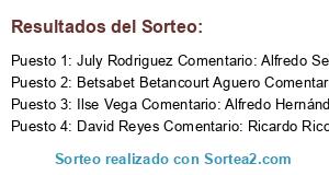 - Ganador 1: July Rodriguez Comentario: Alfredo Serrano Beltran🤞🍀