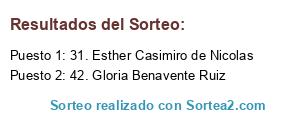 - EL SEGUNDO PREMIO SERA UN REGALO ENVIADO AL AZAR SORPRESA Y UN DESCUENTO DE 5€ EN TU PROXIMO PEDIDO: 42. Gloria Benavente Ruiz