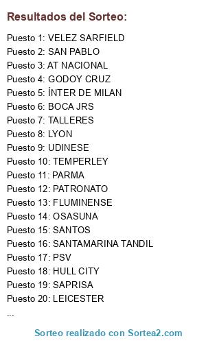 Resultados del sorteo:
