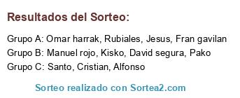 Lista de participantes: Alfonso, Jesus, Pako, Santo, Cristian, Rubiales, Kisko, David segura, Omar harrak, Manuel rojo, Fran gavilan.