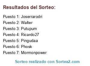 Lista de participantes: Joserrarodri, Pingudaa, Ricardo27, Mormonpower, Phosk, Putupum, Walter.