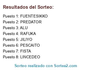 Lista de participantes: FISTA, LINCEDEO, RAFUKA, PESCAITO, JILIYO, PREDATOR, FUENTESIKKO, ALU.