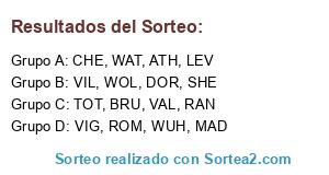Lista de participantes: LEV, CHE, DOR, VAL, VIL, WUH, BRU, RAN, ROM, VIG, TOT, MAD, WAT, WOL, SHE, ATH.