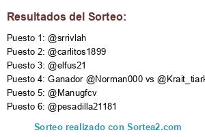 Lista de participantes: @srrivlah, @carlitos1899, @Manugfcv, @elfus21, @pesadilla21181, Ganador @Norman000 vs @Krait_tiark.