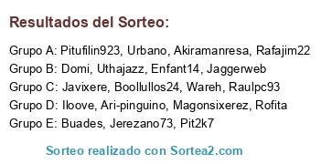 Lista de participantes: Domi, Raulpc93, Wareh, Pit2k7, Magonsixerez, Rofita, Boollullos24, Rafajim22, Urbano, Iloove, Jerezano73, Pitufilin923, Uthajazz, Jaggerweb, Javixere, Buades, Enfant14, Akiramanresa, Ari-pinguino.