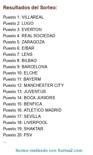 Lista de participantes: MILAN - LETOS, PSG - DANI, LAS PALMAS - TANA, BARCELONA - WILIKI, BOCA JUNIORS - BELOKI, LIVERPOOL - EMILIO, BORUSIA DORTMUND - ANTOÑIN, OVIEDO - SOU, LEVANTE - MACHUPICHU, SEVILLA - PEPE, VALENCIA - GILXO, HOFFENHEIM - WEBO, TENERIFE - VIEJO, CHELSEA - ZIZOU, MANCHESTER CITY - RUBIO, SPORTING DE GIJON - BORDERLINE, MANCHESTER UNITED - JOTA, VALLADOLID - VALDESS, INTER DE MILAN - DANI CALLEJA, LUGO - JONY, REAL BETIS BALOMPIE - MIKY, JUVENTUS - ORLANDO.