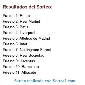 Lista de participantes: Bayern, Chelsea, Espanyol, Juventus, Manchester City, Manchester United, Nápoles, Rayo Vallecano, Roma, Sevilla, Villarreal.