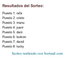 Lista de participantes: rafa, lucky, bukron, cristo, manu, juanr, dani, david.
