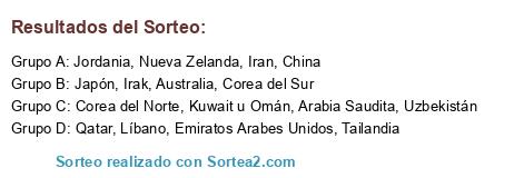 Lista de participantes: Australia, China, Iran, Irak, Japón, Jordania, Corea del Norte, Kuwait u Omán, Líbano, Corea del Sur, Qatar, Arabia Saudita, Tailandia, Emiratos Arabes Unidos, Uzbekistán, Nueva Zelanda.