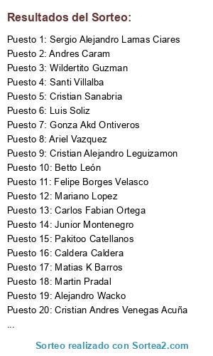 Lista de participantes: Ariel Vazquez, Cristian Sanabria, Luis Soliz, Matias Barbero, Diego Franco, Nicolas Aluch, Cristian Alejandro Leguizamon, Junior Montenegro, Martin Pradal, Gopal Martin Jaramillo, Gerald Josue, Luis Nuñez, Alejandro Wacko, Beto Lazaga, Caldera Caldera, Cristian Andres Venegas Acuña, Esteban Diaz Pes, Santi Villalba, Jose Antonio Flores Garduño, Pakitoo Catellanos, Gonza Akd Ontiveros, Mariano Lopez, Chikitto Bostero, Carlos Fabian Ortega, Sergio Alejandro Lamas Ciares, Matias K Barros, Betto León, Felipe Borges Velasco, Briones Cesar, Wildertito Guzman, Andres Caram, Robinson Araya, Oscar Manrique Montoya, Matias Perez.