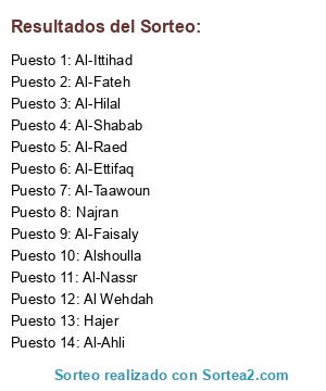 Lista de participantes: Al-Ahli, Al-Ettifaq, Al-Faisaly, Al-Fateh, Al-Hilal, Al-Ittihad, Al-Nassr, Al-Raed, Al-Shabab, Al-Taawoun, Al Wehdah, Alshoulla, Hajer, Najran.