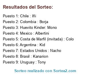 Resultados del sorteo: