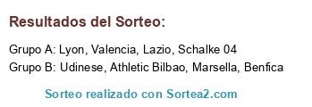 Lista de participantes: Athletic Bilbao, Lazio, Udinese, Marsella, Lyon, Schalke 04, Valencia, Benfica.