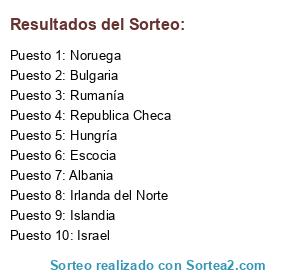 Lista de participantes: Noruega, Rumanía, Islandia, Albania, Bulgaria, Republica Checa, Hungría, Israel, Irlanda del Norte, Escocia.