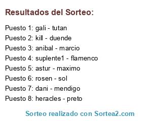 Resultados del sorteo: