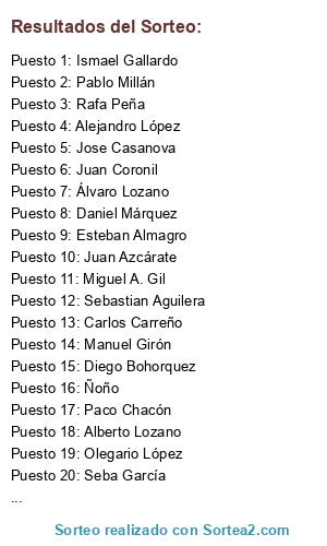 Lista de participantes: Juan Azcárate, Jose Casanova, Francisco Casanova, Manuel Girón, Ismael Gallardo, Olegario López, Jorge López, Alejandro López, Alberto Lozano, Miguel A. Gil, Sebastian Aguilera, Álvaro Lozano, Pablo Millán, Ñoño, Juan Coronil, Daniel Márquez, Kilian Chacón, Paco Chacón, Esteban Almagro, Diego Bohorquez, Carlos Carreño, Rafa Peña, Seba García.