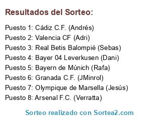 Resultados del sorteo: