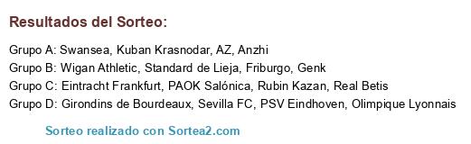Lista de participantes: Real Betis, Olimpique Lyonnais, Anzhi, Kuban Krasnodar, Swansea, PSV Eindhoven, PAOK Salónica, Standard de Lieja, Rubin Kazan, Wigan Athletic, Eintracht Frankfurt, Girondins de Bourdeaux, Genk, Sevilla FC, Friburgo, AZ.
