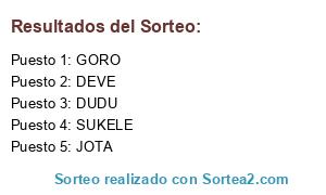 Lista de participantes: DUDU, SUKELE, DEVE, GORO, JOTA.