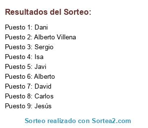 Lista de participantes: Isa, Carlos, Dani, Javi, Jesús, Alberto, David, Sergio, Alberto Villena.