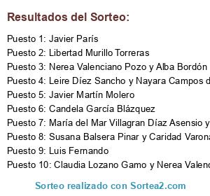 Lista de participantes: Marian Díaz Duque, Ángel Jumbo Bustamante, Lisseth Mosquera, Ana María Morocho Torres, Conchi Cardenal Rodríguez, Wilma Morocho y Verónica Lomas Maila, Susana Balsera Pinar y Caridad Varona Borges, Yolanda González Ponce, Sergio Martínez y Marta Losada, Norian Ralmomo, NIÑO SIN NOMBRE, Ana Salgado Viara, Laura Rincón de Lago, NIÑA SIN NOMBRE, María Pilar Sánchez Casaño, Asunción Hernández, Jeannth Verónica, Marina Carrasco Jorge, Verónica Orgaz Camacho, Elisabeth Chafla Molina, Tamara, Silvia Iglesias, Elisabeth Durán Lozano y Ángela Silva Pardo, María del Carmen de la Peña, Isaac Muñoz, Daniel Romero, Miguel Ángel Martínez Barrul y Daniela Núñez Martínez, María Isabel Díaz, Sara y Tarek Ammar, Megan y Raquel Florindo González, Shelly Yepez Chinga, Jacinto Sánchez Pastor, María Jesús Domínguez, Alejandro Pejes Salgado, Francisca Martínez, Félix Valencia, Francisca Martínez Marcos, Yanina Guerrero, Elena Álvarez Bernad, Rosa María Bernad García, Ainhoa Zarta, Brandon y Brian Tumalli, Elisa Andra, Angels Nolons Mangue, Arel Potri Forrufino Carballo, Wellington Aramillo, Faustino Chamorro Gómez, Sandra Jiménez Miguel, Juan Carlos Sante Blanco, Laia y Melissa Nadrade, María Isabel Moreno Sánchez, Eduardo Fernández Fernández, Milady Abad de Dios, Jesús Torres, Tomás Sakowski, Inés Hermoso, Antonio Kordoiro de Silva, César Aransure Portales, María Mercedes Ortiz y Beatriz Moreno Perlado, Patricia Dávila Martín y María Ángeles López Delgado, Raquel Ramons Monreal, Cristian Vicente, Dario Gutiérrez Palomares, Carlos Guerrero Palacios, Fernanda de Freitas Cira y Sheila Martín Matos, Lola Muñoz Paredes y Jorge Muñoz Paredes, Lucy Lara Manzanares, Karyne Piccetti Saray, Leire Díez Sancho y Nayara Campos de Torre, María Isabel Sánchez Murillo, Yaiza Toral González, Candela García Blázquez, Carlos López Rivas, Gema Cabezas Ruiz, Adrián Paladinea García, Narciso J. Pérez, Alexandra Leiton Viscarra y Sofía del Río Leiton, David Ortega Ponces, Alejandro y Rocío Pillo, María del Mar Villagran Díaz Asensio y Mireia Domínguez, Susana Amola Pérez, Wander Alexis Santana, Jeremy Calderón y Sofía Goldar, Moreno Primicia Santos, Nerea y Adrián, Víctor Bravo Castro, Nerea Valenciano Pozo y Alba Bordón García, Rodolfo Sánchez, Celia Beltre Santa, Liz Cecilia Arandia Quevedo, Rafael García, Samy Singh, Sara Vezastegui, Belén Villena, Gemma María Jiménez Manchón y Juan Antonio Rodríguez Melero, Javier París, María López, Israel de la Rosa Heredia e Israel y Ruth de la Rosa Díaz, Luis Fernando, Luis Fernando Lasdam Suárez, Luis Vezastegui, Alba María Román, Susana Ruiz Marcial y Luis Daniel Serrano Ruiz, Alison Hinga y su hermanita, Ana Caballero García, Claudia Lozano Gamo y Nerea Valenciano, Esmelza García, Fátima Aghralou, Freddy Espinojos y Sergio Espinojos, Jeremy Brito, Jorge y Miguel Ángel, Karey y William Lozano, Libertad Murillo Torreras, Marcos Gómez Mora, Martín Briones Morán, Paula y Héctor, Rubén Zúñiga, Alejandro Catalá García, Carlos Vega González, Eduardo Manuel Rosales Edeguardo, Javier Martín Molero , Laura Ballesteros Sánchez y Alba Íñiguez Sánchez, Lucía García Vacas, Paloma Martínez de Frutos, .