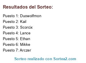 Lista de participantes: Lance, Arczer, Duowolfmon, Kail, Scorcix, Mikke, Ethan, Lance, Arczer, Duowolfmon, Kail, Scorcix, Mikke, Ethan.