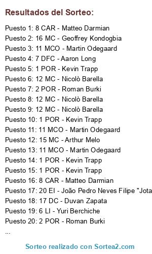 Lista de participantes: 1 POR - Kevin Trapp (83), 2 POR - Roman Burki (80), 3 DFC - Harry Maguire (83), 4 LD - Ricardo Pereira (84), 5 LI - Alphonso Davies (83), 6 LI - Yuri Berchiche (82), 7 DFC - Aaron Long (73), 8 CAR - Matteo Darmian (78), 9 MC - Jude Bellingham (80), 10 MI - Thorgan Hazard (82), 11 MCO - Martin Odegaard (82), 12 MC - Nicolò Barella (85), 13 MCD - Tomáš Soucek (82), 14 MI - Steven Bergwjin (80), 15 MC - Arthur Melo (82), 16 MC - Geoffrey Kondogbia (79), 17 DC - Duvan Zapata (83), 18 ED - Gareth Bale (81), 19 DC - Zlatan Ibrahimovic (83), 20 EI - João Pedro Neves Filipe "Jota" (74), 21 DC - Patrik Schick (80), 22 DC - Moussa Marega (77).