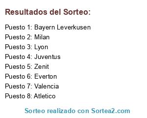 Lista de participantes: Bayern Leverkusen, Juventus, Valencia, Atletico, Lyon, Zenit, Everton, Milan.