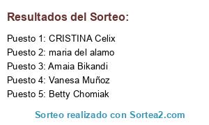 Lista de participantes: Leticia Cerro espi, Laura Rubín Álvarez, Puri Almazan Ortega, sol carballo, Lucia Perez Perez, Pilar Diaz, Sara Blanco, Esther De la cuerda bueno, Angeles Cabral, Laura Moreno, Agustí sancho, IRENE FERNANDEZ CAMIN, eva villena, sendy peña toledo, Sonia de las heras, Marta vicente Hernández, Laura Casanova, leticia san jose, Milagros Gallego, Elena Navarro, yolanda hernanz, Vanesa mendez, Laura Herrero, Arantxa Villalvilla, Carlos Vázquez Espigó, montse latorre, Maria José Álvarez Herrera, Eva Maria Montalvo Pastor, Eva Maria Esparza Leal, MIRIAM ROJAS DOMINGUEZ, Esther zamora, Angel García López, marisabel arebalo dias, lorena hernandez, nines zalvez, maria jose asensio gomez, Diana Tanco, rebeca pinar asensio, Almudena Mena, CRISTINA Celix, maria del alamo, MANUEL ALVAREZ RODRIGUEZ, rocio camello gazapo, Marcela Cruz, Adela Grande, Raquel Iglesias Moreira, GABRIEL CINTADO PASTOR, Eugenia Contador, Esther arrabal, Victoria Hernández, yolanda Famadas Gil, María José Peris Sanchis, sonia cervello, María Luz Cortés Garnica, Susana vazquez casares, Yolanda Pons Cañamero, mireia galera, Alejandra Jiménez Perez, Barbara garcia alvarez, Leila Hachmioune Raposo, rosa maria cordero retamosa, Aranzazu González, INMA CASTILLO, Yballa Moreno, Sonia Martinez, rosario delgado, Sandra Ferré, RAQUEL GARCIA MARTIN, Alejandra tamayo, alicia inglada baños, Anabel Ureña, Natividad Belén Natividad Belén Valeroso Blazquez, MARÍA JOSÉ MANZANARES ARTÉS, blanca guzman, Marjorie Montaner, patricia calderon, rocio Cañal, Carol Carol, esmeralda alonso Gilsanz, marta moraza, belen fraga lopez, Ana zapata, áurea Villar fandiño, monica villar, Ana Ana Cano, Almudena Butrón Castillo, Conchi Benítez, Ana Rosselló, Veronica Garcia, María García de Andrés, alejandra Carballeira rivera, Rosa Martin Cortés, loli zapata pendon, Iria Dominguez, María Jesús Sánchez del castillo, silvia rodriguez, Ana Maria gomez cruz, beatriz bodas arriero, nina fernandez abad, Sonia Sánchez, Gisela Ferreyra, griselda salgado, cristina ledesma, Ana Collado Candial, beatriz beatriz Alejos, beatriz martinez lopez, Alicia chover, isabel amengual, Pilar Arjona, daniel martinez Olmo, valeska morales, Laura Estrada, Verónica Jiménez Gallardo, sandra becerra lopez, montse diaz, Jessica Mondejar Muñoz, Marta Fonseca Arias, AURORA MOHEDANO, Lorena Gándara Ferreira, mamen mamen, paloma alvarez, rocio tejada, Vanesa Acosta Segovia, Monica Alende, Sara gil arranz, marien Martínez, Yolanda Gutiérrez, Maite Juarez, Laura Bonillo, Miguel jose Pola Frances, Soraya Bravo, miriam gonzalez rodriguez, patricia fernandez lombardia, carmen elena untaru, ivanina yordanova hristova, noelia martinez, Raquel Provencio, mercy mercy Soria sanchez, ixone bonilla alba, Helena García, Rocio Marquez Baena, María Pérez, loly risquete, Inma Cazorla porcel, SANDRA JORGE BAZ, Yessica Miguelez Madrigal, Amparo Andreu, Jasmin Hiesberger, maría jimena Boe, isabel picazo perez, Alicia Moneo, Mark luz jimenez blanco, raquel moreno, Fina Vigo Dominguez, Laura barranco cobo, Gema moset gallego, María José Busto, Ana Eric plazgraf en facebook, isa Fernández, Teresa Blasco, ROSA GOCHICOA, Olalla Ramallo Argibay, maria dolores aribo sousa, María Emma Vega mira, mercedes rejon moreno, aranzazu araujo, miriam zambade massaguer, Monica Martinez, Purificación Soto Recio, Natalia Pertega Diaz, Mónica Martínez García, Tania Cotta, Inmaculada suano sobrado, Laura Puyana, LARA IBAÑEZ ALVAREZ, Izaskun Gutiérrez, sole ruiz serrano, María del Mar Martínez Cabrera, sara sara perez, Verónica Pons Tarrazona, Victoria lópez, raquel mesonero Ordoñez, Emma Vellvehi, Montse Orta, Elisabeth Blay Pastor, Patty Ramos, miriam romans, Nuria Lopez, carolina Sánchez romo, Nuria Calderon García, Esther Morón Esteve, noelia fernandez duran, marta criado, Bella Luz Vela de la Fuente, yaiza granda taboada, Toñy Otero García, Soledad Sanz, Maria Alonso, Leticia Rodriguez, Laura Fernández, Mónica Gil, Termutis Pulido de la Montaña, Bibiana Puiggarí, Antonia Jurado Soler, Reyes Guerras, carolina Mariscal, Patri Torres Patricia Torres Rodriguez, Esther Sanchis Avila, verónica Rodríguez Doval, almudena gonzalez, Clara Castellot, nieves yebes, maria perez, adelaida miró, Mercedes Sánchez Sánchez, ERIKA JIMENEZ PEREZ, SANDRA GARCÍA LLORENTE, Jimena Molina, Reyes Herrero, VERONICA ROMAN GONZALEZ, Carolina Moreno, Lola Domínguez, judith alexandra flores ruiz, pili romero, cristina borras, Virginia Rubiales García, cris moreno, idurre alonso, Monica Andres, mila gomez, mat asencio martin, alicia garcia salgado, jessica padilla, FRANCISCA (Paqui MP) MORA PEREIRA, miriam blaya, yolanda perez reyes, sugen nereida Calzadilla Martínez, ROSANA ROSANA LLORET DE GRACIA, lucia trigo, Yolanda Torres, Milagros Senes, Carla Illana Ferrer, natalia santos, Sonia Lamela, Laura Álvarez, Viviana Rodríguez, María teresa roman garcia, Nuria Gamazo Martínez, Aura Galvez, rosa maria luque ruiz, Ascen Villa ALISES, maria susana villar vicente, fancisca morenas, Virginia lozano, ESPERANZA CASTILLO SANCHEZ, maria jose bejarano elez, adriana ferreira maurente, julia infantes fuertes, FRANCISCO JAVIER GAMEZ MIJES, jose ramon gonzalez, Marta Juarez, MARTA CARRETERO GARCIA, Maria Teresa Pla Llario, vanessa esteban hurtado, maria del mar gimeno, Sonia Becedoni Romero, marta faus fluixà, maria jose estevez sio, marta prado, beatriz gutierrez, verónica cortés gil, Yolanda jalon Gómez, Marta García - Moya Martínez de Osaba, Nuria Perez Ortega, Rosario Puerto, mirian salinas, bibiana losada, Rosario Soto, Yolanda lopez, MONTSERRAT TOLEDANO LÓPEZ, juan jose hurtado pino, Ana Mª López, Rocío García, Silvia Santamaria González, Ana Carrillo, Aroa Vera Molina, Sonia sonia, karina hernandez, Iluminada Duran, Susana Romero, Maria Luisa Rodriguez Ruiz, Rakel Donaire Soledad, Paloma Mateos hernandez, maria del mar guerrero, Almudena Serrano, Ali