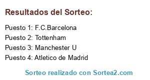 Lista de participantes: Manchester U, F.C.Barcelona, Tottenham, Atletico de Madrid.