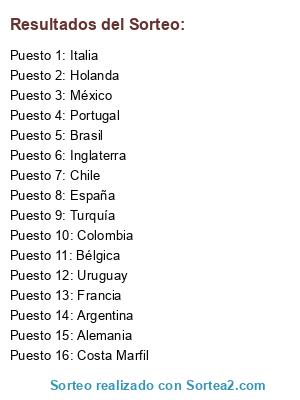 Resultados del sorteo: